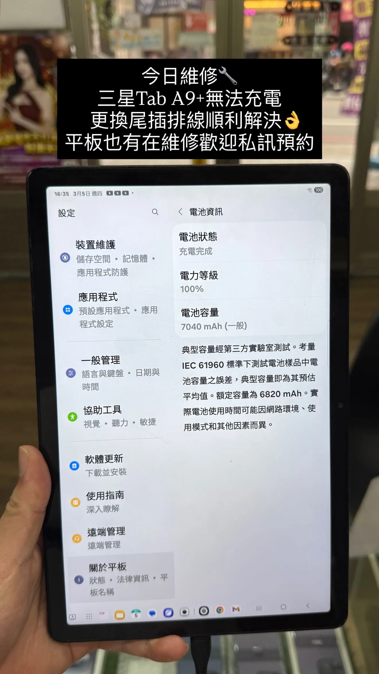 三星SAMSUNG Galaxy Tab A9+無法充電,更換尾插排線順利完修囉~
